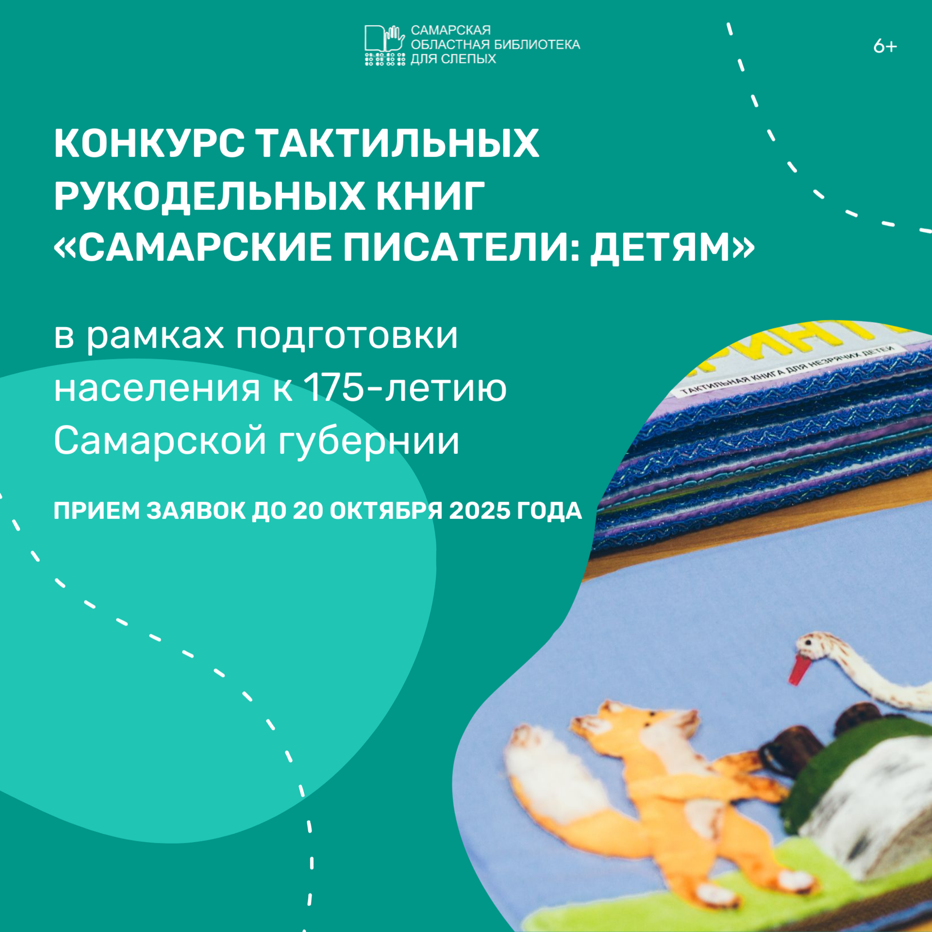 Самарская областная библиотека для слепых продолжает прием заявок на конкурс тактильных рукодельных книг «Самарские писатели: детям» в рамках подготовки населения к 175-летию Самарской губернии.