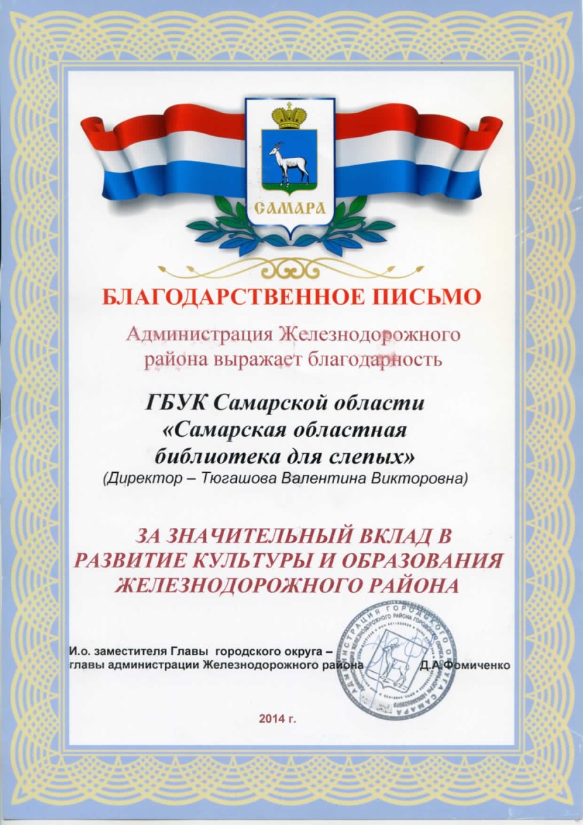 За значительный вклад в развитие культуры и образование железнодорожного района