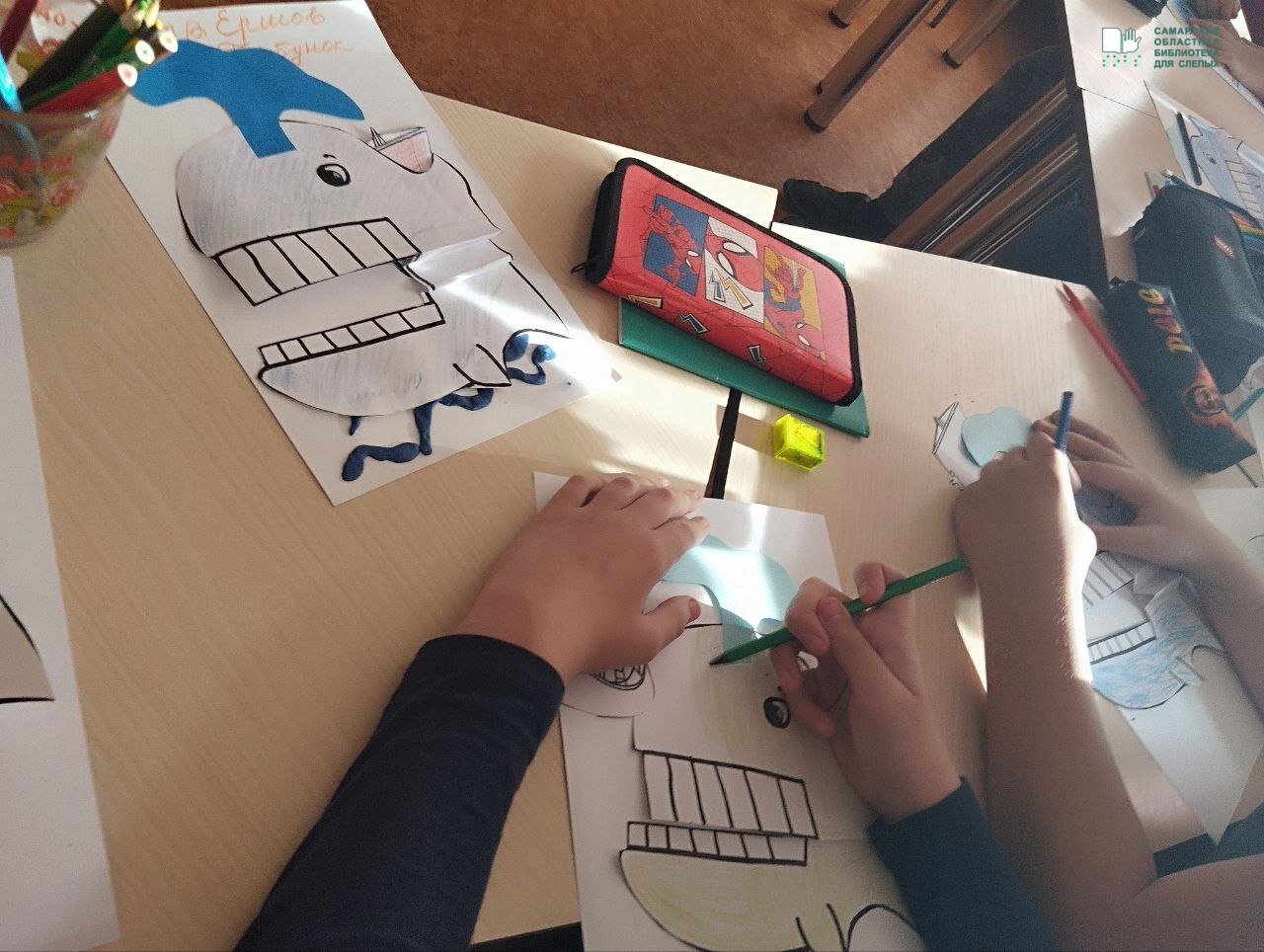 Самарская областная библиотека в сотрудничестве с самарскими школами-интернатами для детей с ограниченными возможностями здоровья № 17 и «Преодоление» провели мастер-классы для школьников по изготовлению макетов обложек любимых сказок. Ребята участвовали в беседе о строении книг, рассмотрели обложки книг.