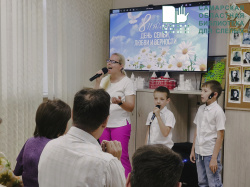 День семьи, любви и верности в нашей библиотеке прошёл в атмосфере тепла и творчества: звучали строчки стихов и песен о семье и семейных ценностях в исполнении читателей, а партнером мероприятия стала вокально-театральная студия "Фантазéры". Руководитель коллектива Виктория Марченко и два его юных участника Максим и Артём исполнили музыкальные номера, некоторые из которых предлагаем вам посмотреть на видео.