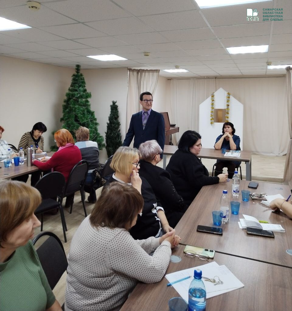 В декабре 2025 г. ГБУК «Самарская областная библиотека для слепых» в партнёрстве с Самарской областной организацией Общероссийской общественной организации инвалидов «Всероссийского Ордена Трудового Красного Знамени общества слепых» провела заседание круглого стола «Социокультурная реабилитация инвалидов различных нозологических групп».