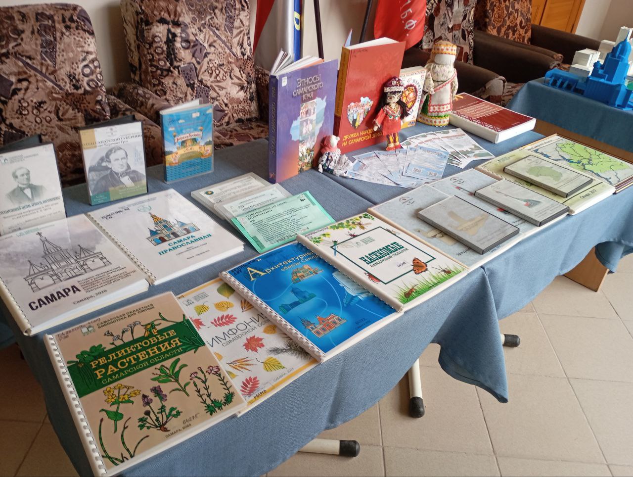 Самарская областная библиотека для слепых в рамках организации выставочного пространства представила гостям мероприятия выставку спецформатов, выставку кукол в народных костюмах, выставку 3-D моделей архитектурных памятников города и тактильную выставку объёмных барельефов по детским рисункам "Самара глазами детей".