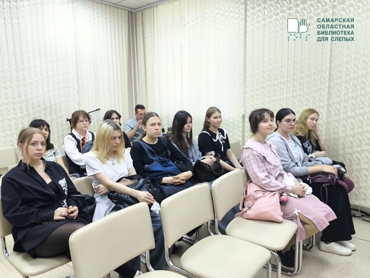 22 и 24 сентября для ординатуры кафедры глазных болезней Самарского государственного медицинского университета и студентов из Самарского государственного института культуры были проведены методический практикум и экскурсия по Самарской областной библиотеке для слепых.