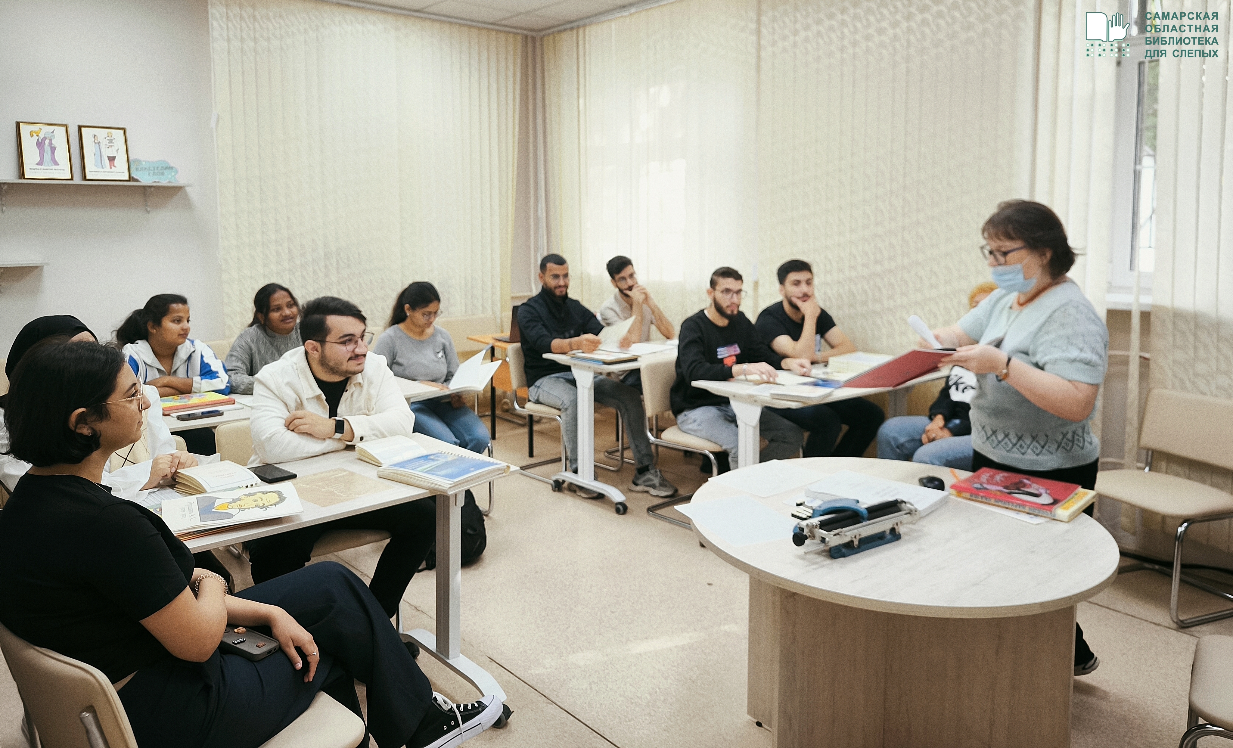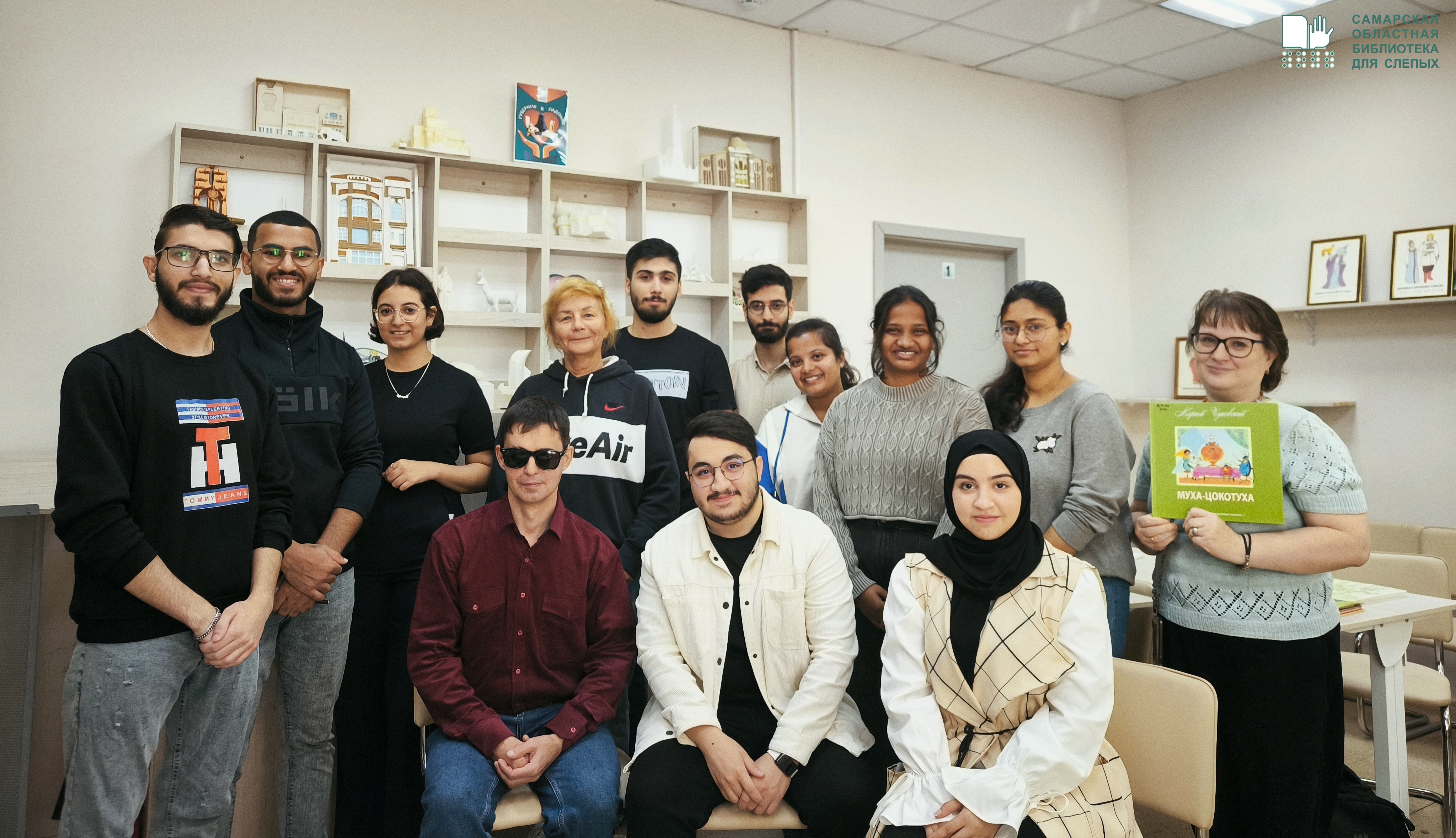 12.09.2025 г. в Самарской областной библиотеке для слепых царила атмосфера дружбы и обмена знаниями ! Мы с гордостью провели уникальный методический практикум для студентов Самарского государственного медицинского университета из Туниса, Египта, Индии, Сирии и Ирака в рамках Дня дружбы народов Самарской области.