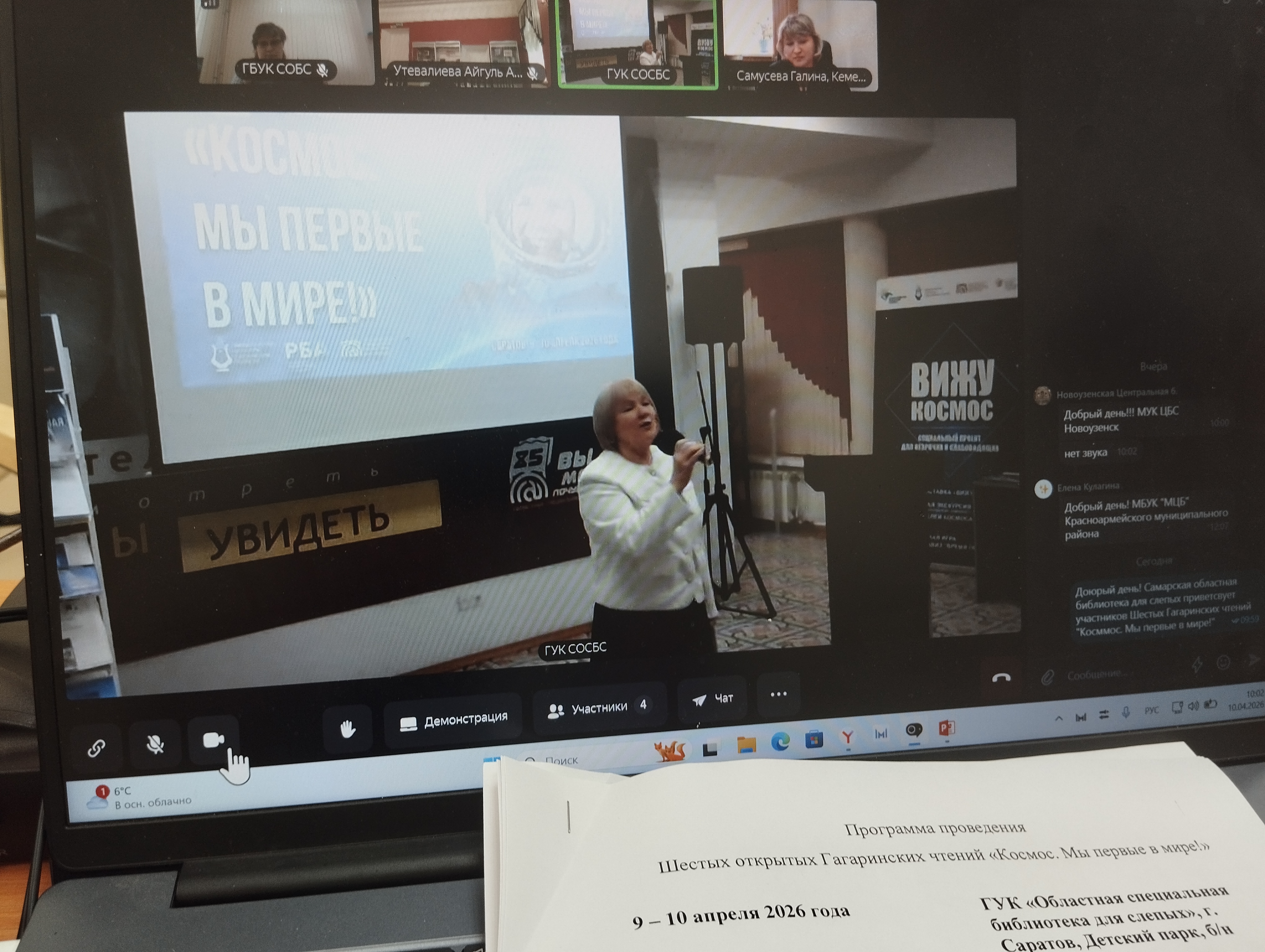 На онлайн-конференции ведущий методист Самарской областной библиотеки для слепых Наталья Михайловна Шапко представила опыт работы Самарской областной библиотеки для слепых с космической тематикой.