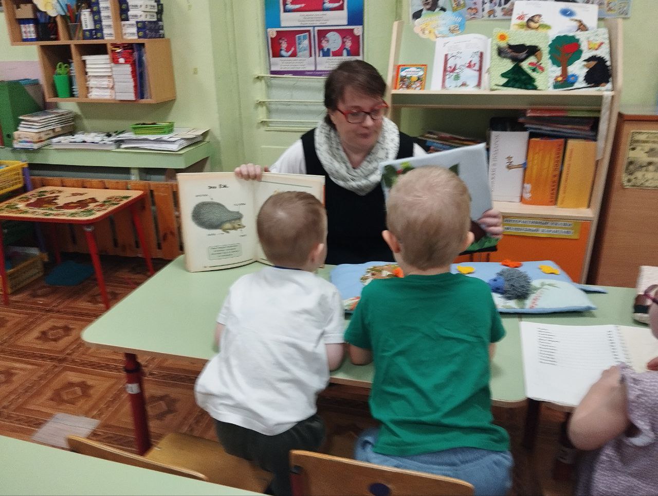 Присоединившись к этой Акции, для дошколят было проведено творческое мероприятие«Колючий серый еж живет в лесу или в саду и носит на спине еду». Дети активно участвовали в беседе про ежиков, рассматривали рельефные, тактильные картинки, слушали сказку сызранской писательницы Надежды Подлесовой «Бусы». Очень старательно мастерили поделку «Ежик и рябиновые бусы» из картона, ниток и пластилина.