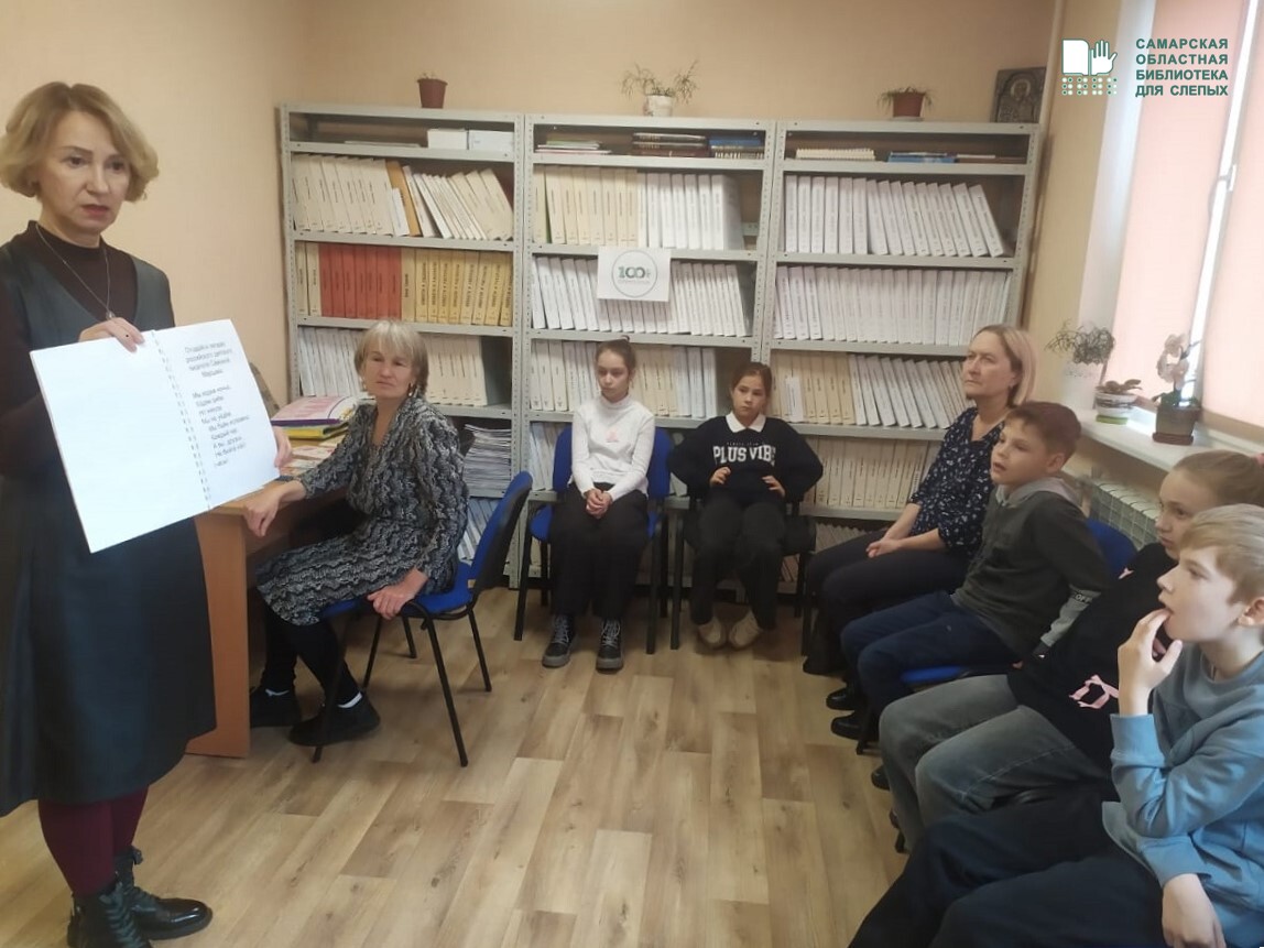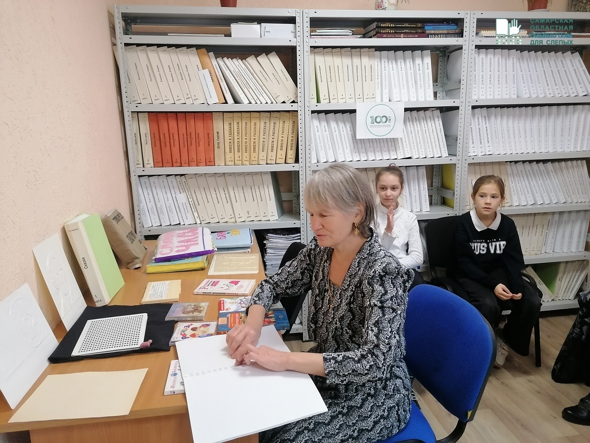 Школьникам рассказали о специальной библиотеке для слепых и слабовидящих людей в городе Сызрань и познакомили с книжными фондом. Ребята узнали, как читают незрячие и слабовидящие, познакомились с разнообразием специальных форматов для прочтения книг: от шрифта Брайля, рельефно-точечных пособий и тактильных книг до электронных носителей. В завершение мероприятия дети прослушали отрывок из сказки Г.Х. Андерсена «Русалочка» в исполнении читателя-брайлиста Надеждиной Л.Н.